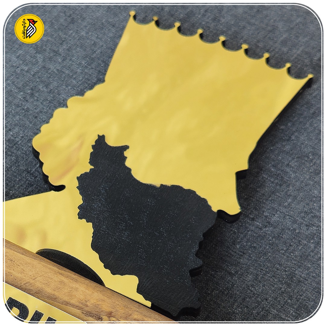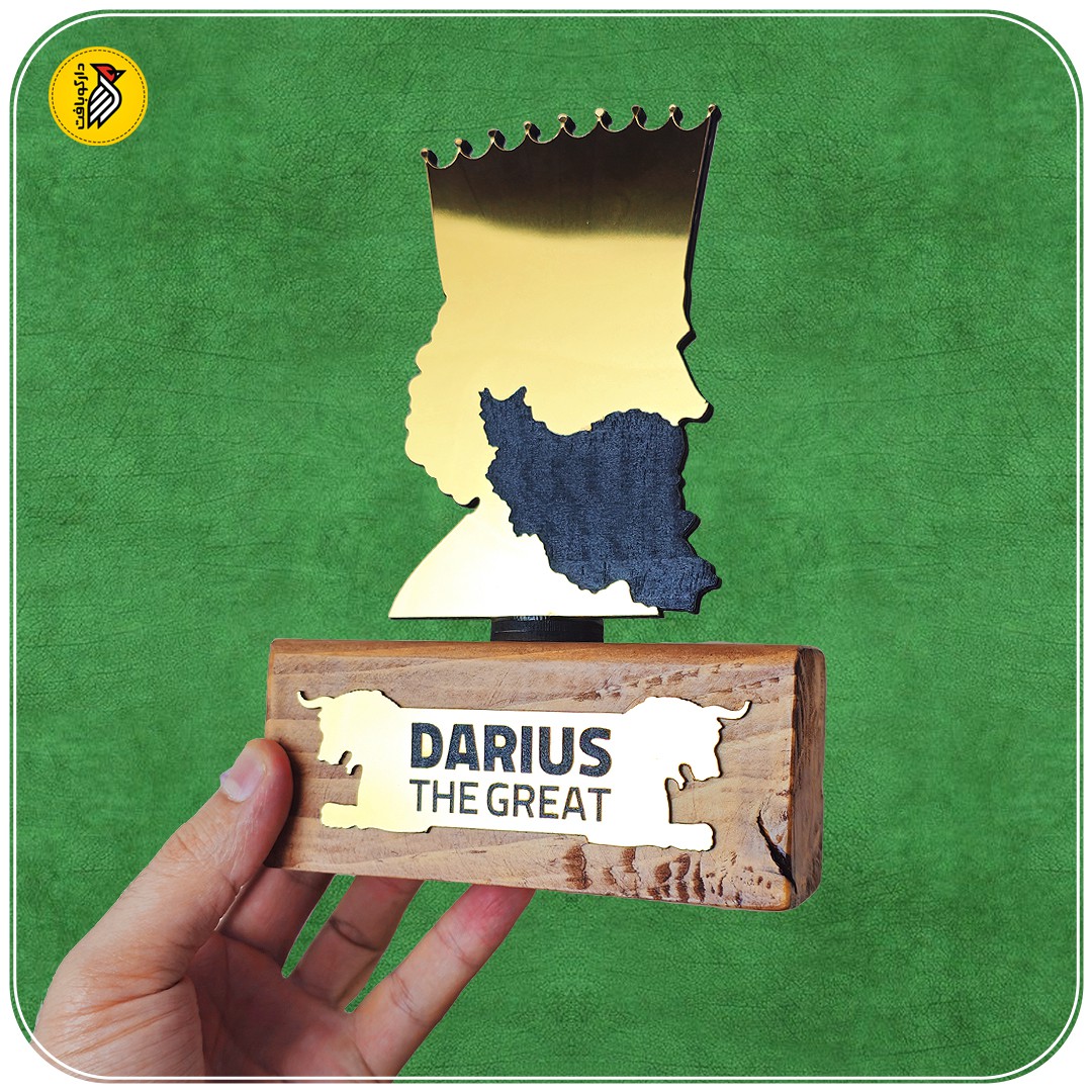 استند طلایی داریوش کبیر با پایه چوب طبیعی
